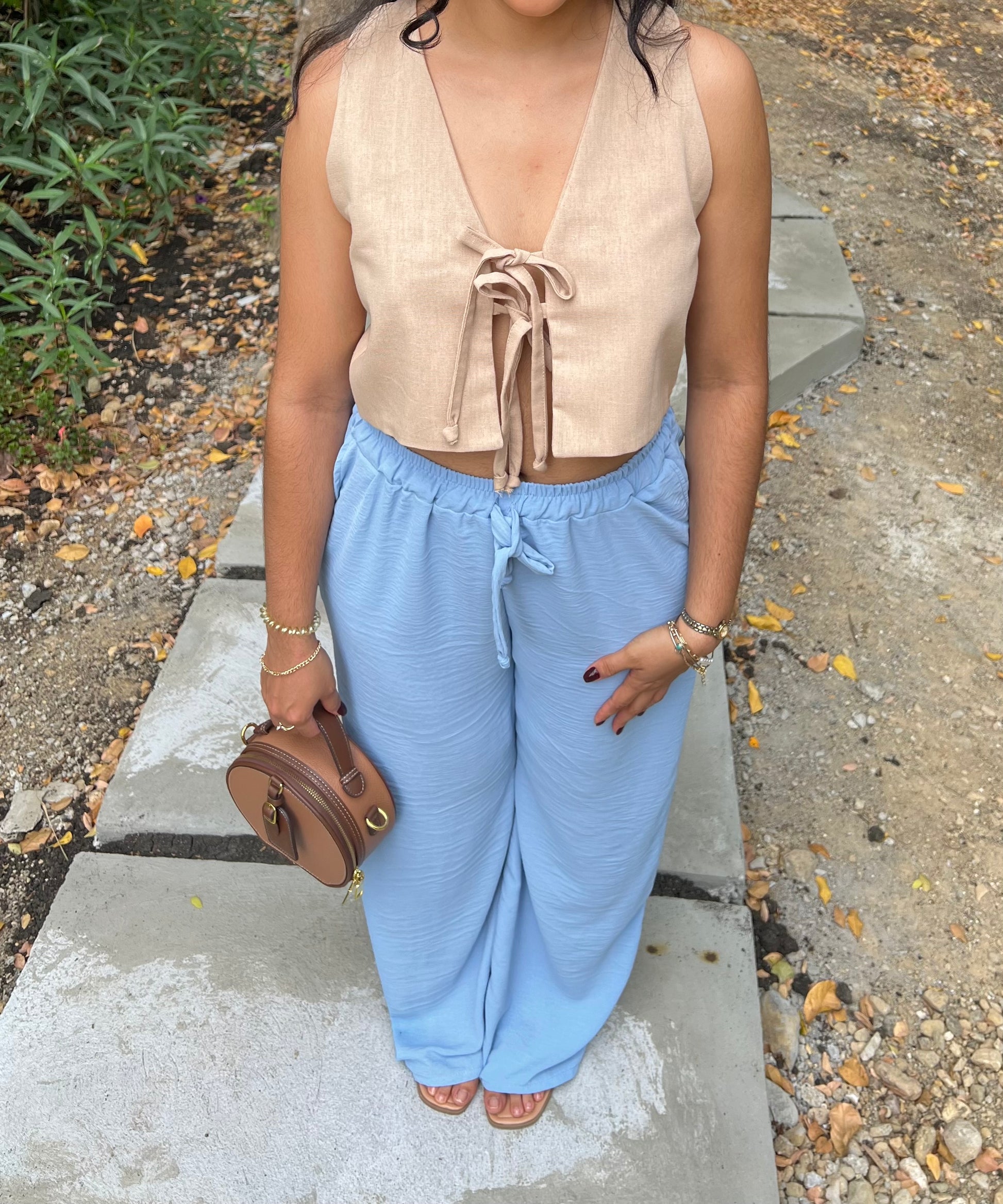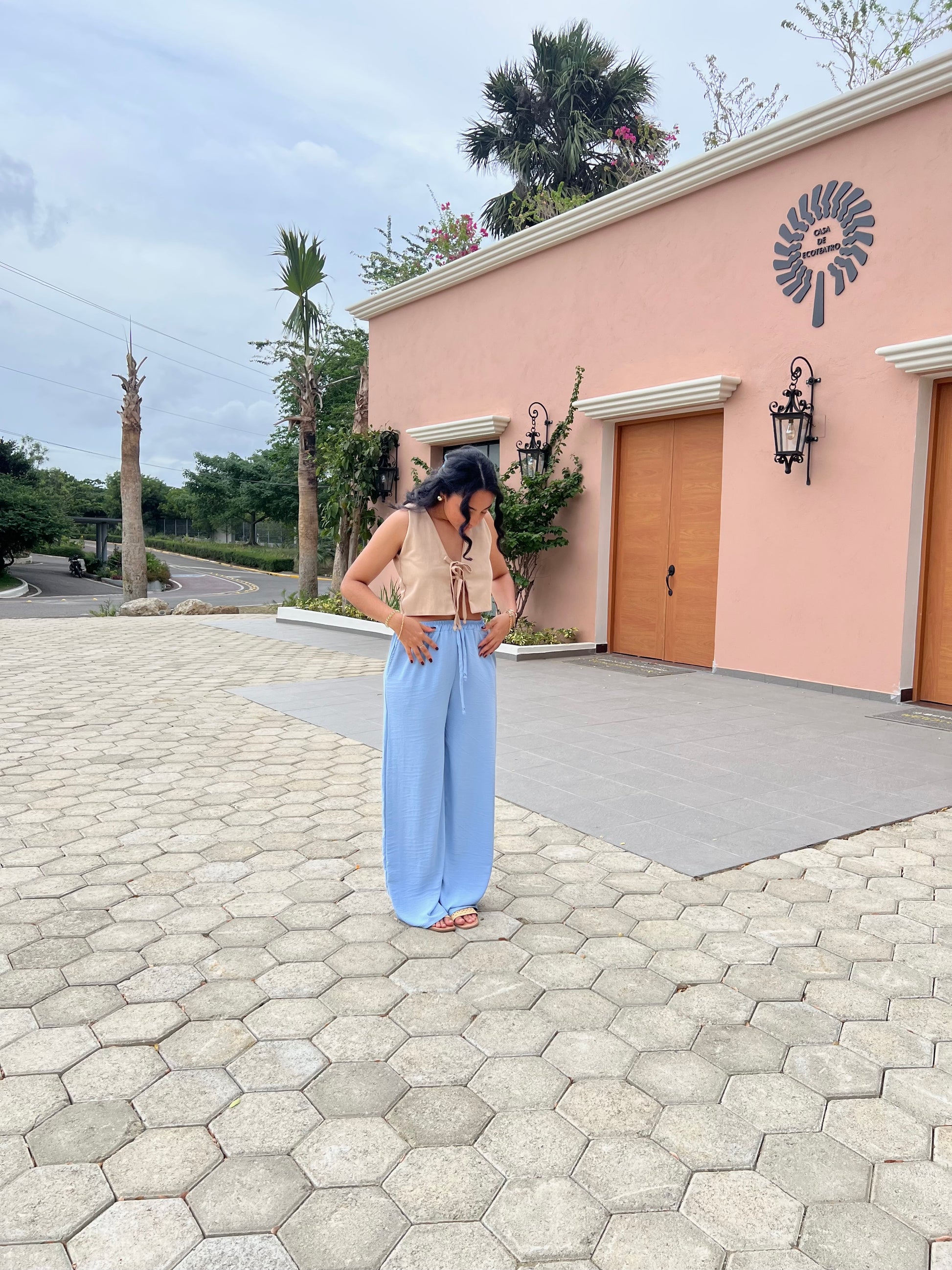 Pantalón holgado veraniego. Cintura elástica. Modelo usa talla Small