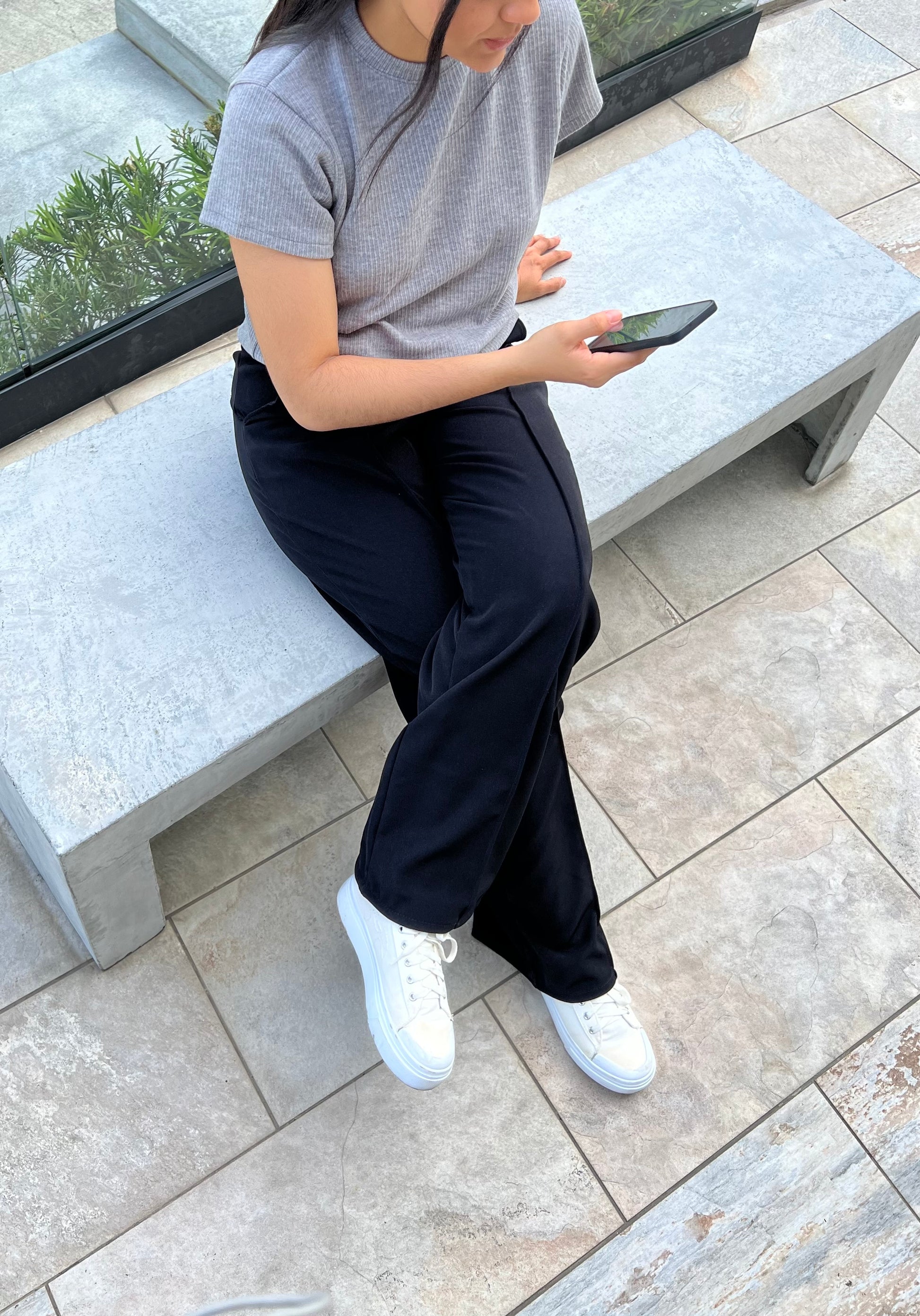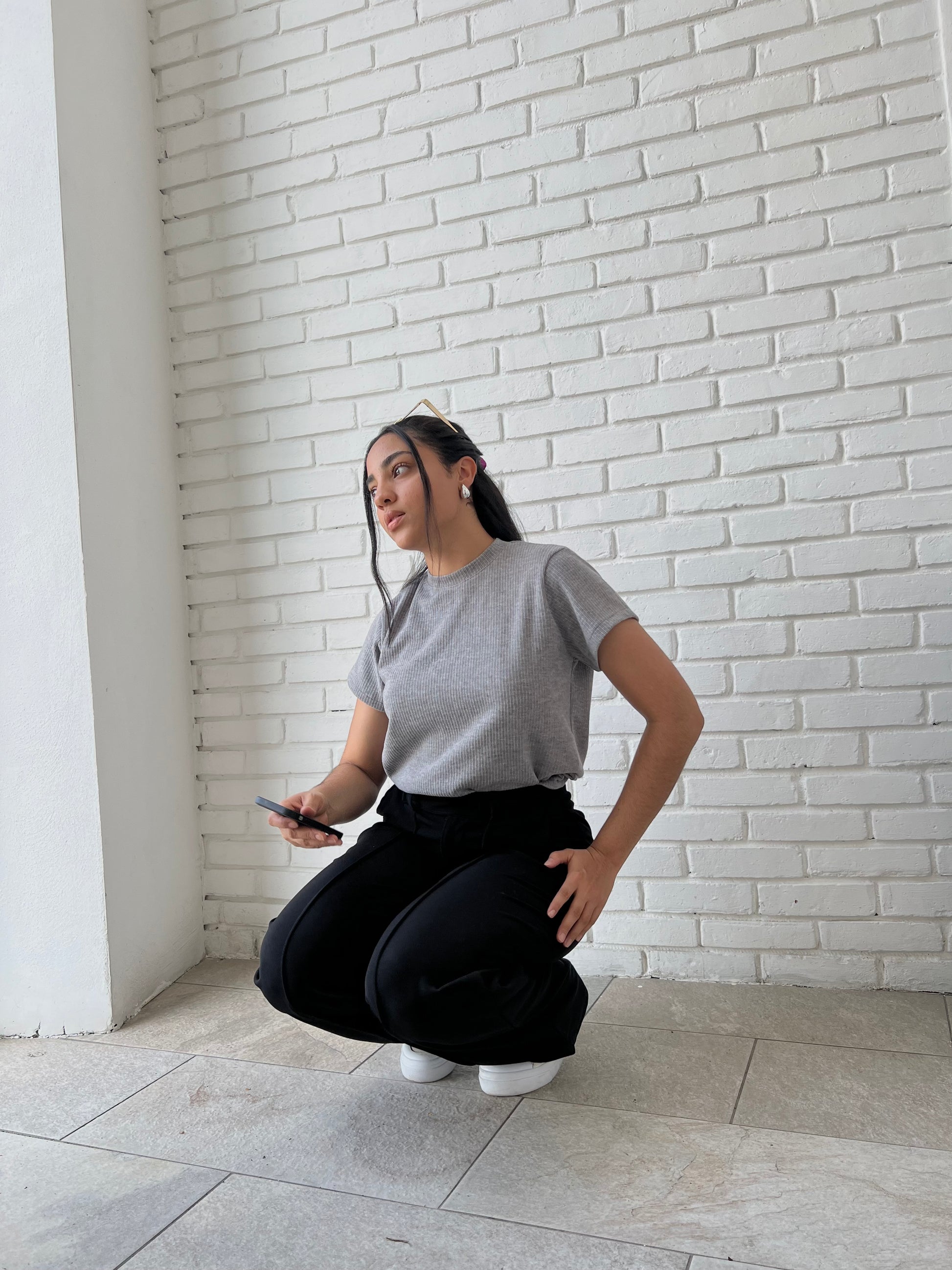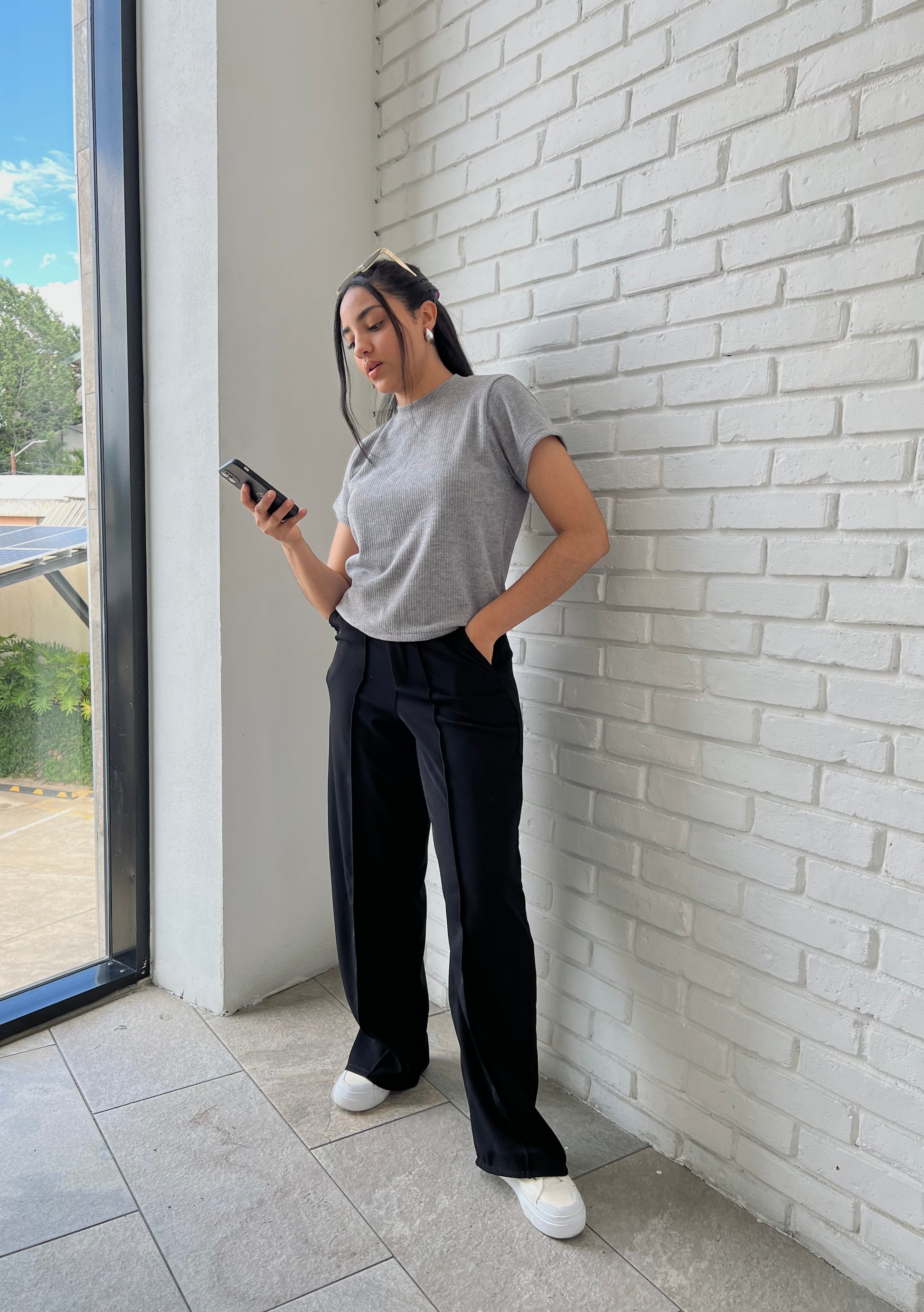 Puedes encontrar el pantalón del outfit en el catálogo o en el buscador como “Pantalón fino broche”.